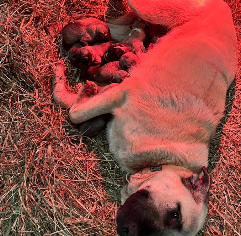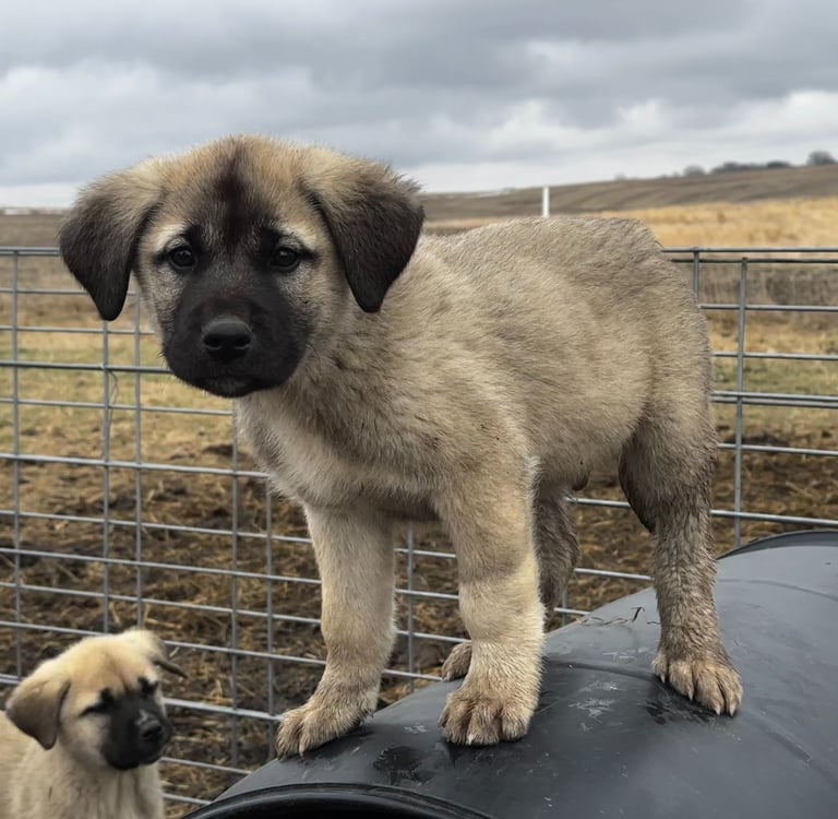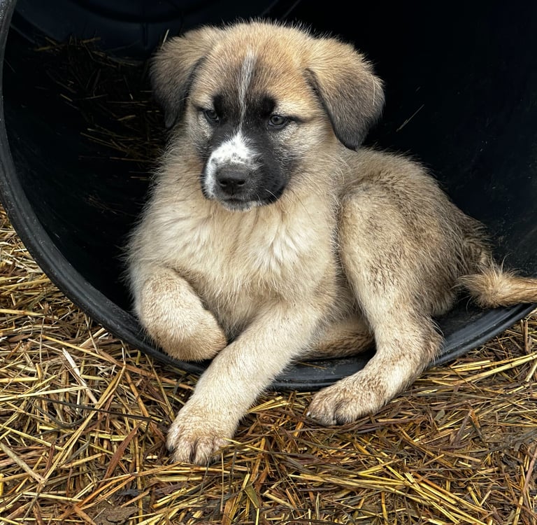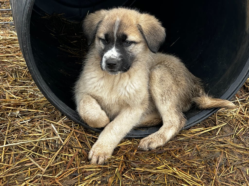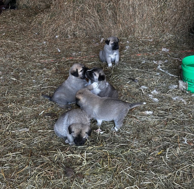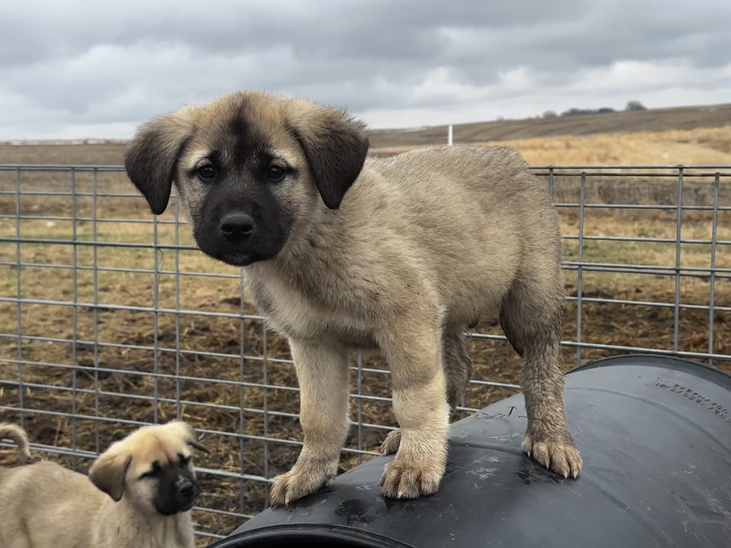 Discover our Guardian Angaloz puppies, including their details and availability, here. These puppies are from working-line Livestock Guardian Dog (LGD) crosses of Anatolian Shepherd, Kangal, and Turkish Boz breeds. Each puppy has a placeholder name for easy reference.